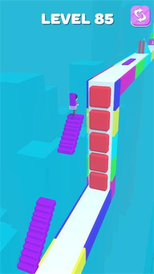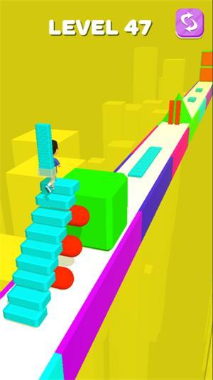 楼梯主管必须先收集足够的砖块来楼梯,然后才能通过高处的障碍物;这种独特的玩法机制让跑酷游戏有了全新的体验维度。