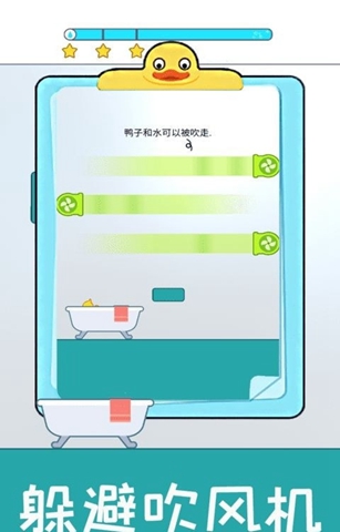 开心小黄鸭是一款充满创意的休闲益智游戏,以帮小黄鸭洗澡为主题,带来独特的游戏体验。游戏中的小黄鸭形象简单可爱,配合俏皮的游戏画面和魔性音效,让人爱不释手。操作非常简单,只需点击屏幕放水,然后将小黄鸭放入浴缸即可完成关卡。游戏还融入了物理元素,玩家需要运用智慧解决各种有趣的难题。