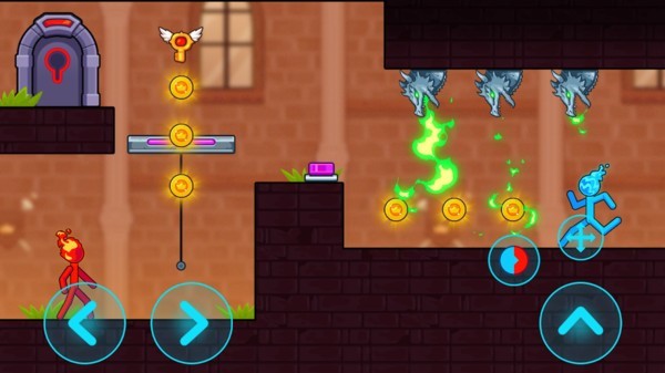 游戏最大的特色在于冰火双形态的即时切换机制,玩家需要根据场景需求灵活选择冻结或燃烧能力。两种形态各具特色,冰形态可以冻结水面制造通路,火形态则能融化障碍物开辟新路线。双角色配合系统让游戏更具策略性,当两个角色协同作战时,可以触发威力强大的组合技。关卡设计巧妙融入环境互动元素,每个物品都可能暗藏玄机,需要玩家仔细观察才能发现隐藏线索。