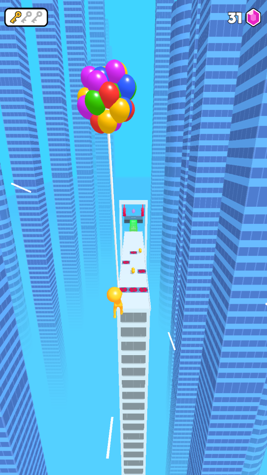 游戏开始时,玩家只需点击屏幕即可进入精彩的冒险旅程。在游戏中,玩家将操控一个可爱的小黄人角色,这个小黄人会通过拉住气球的绳子让自己漂浮起来。在前进的过程中,玩家需要穿过各种通道和障碍,每经过一个加数点就能增加气球数量。气球数量越多,角色就能飞得越高,同时获得的分数也会相应提升。游戏操作简单易学,但想要获得高分需要玩家掌握精准的时机和路线规划。