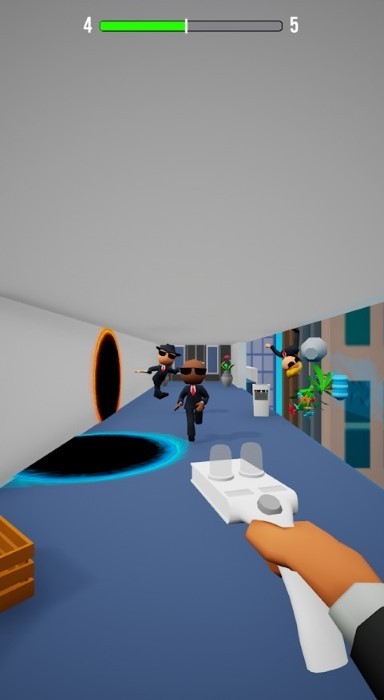 传送门枪大师是一款融合了益智解谜与动作射击元素的创新游戏。游戏设置了多个风格迥异的奇幻世界,每个世界都配备了独特的枪支武器等待玩家解锁使用。在游戏过程中,你需要巧妙运用传送门机制来创造战术优势,通过精准射击在敌人之间制造传送通道,让他们自相残杀或者陷入困境。游戏中的敌人种类丰富,包括警察、黑手党等不同阵营的对手,他们会使用各种武器对你发起攻击。你需要时刻保持警惕,利用环境中的各种道具和障碍物来保护自己,同时寻找机会反击敌人。