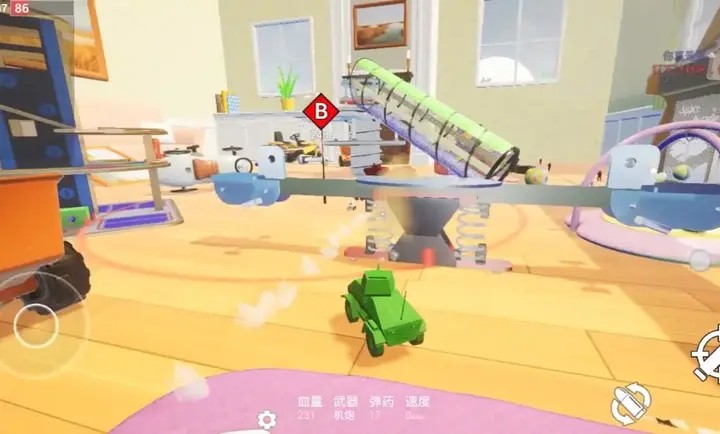 在游戏中,各种木马,滑滑梯,棋类玩具,拼图等应有尽有,缤纷的色彩应用在场景里,更显得游戏的氛围如童话一般。这些熟悉的玩具元素经过精心设计,不仅充满童趣,还能作为战术掩体或制高点,为战斗增添更多策略性。