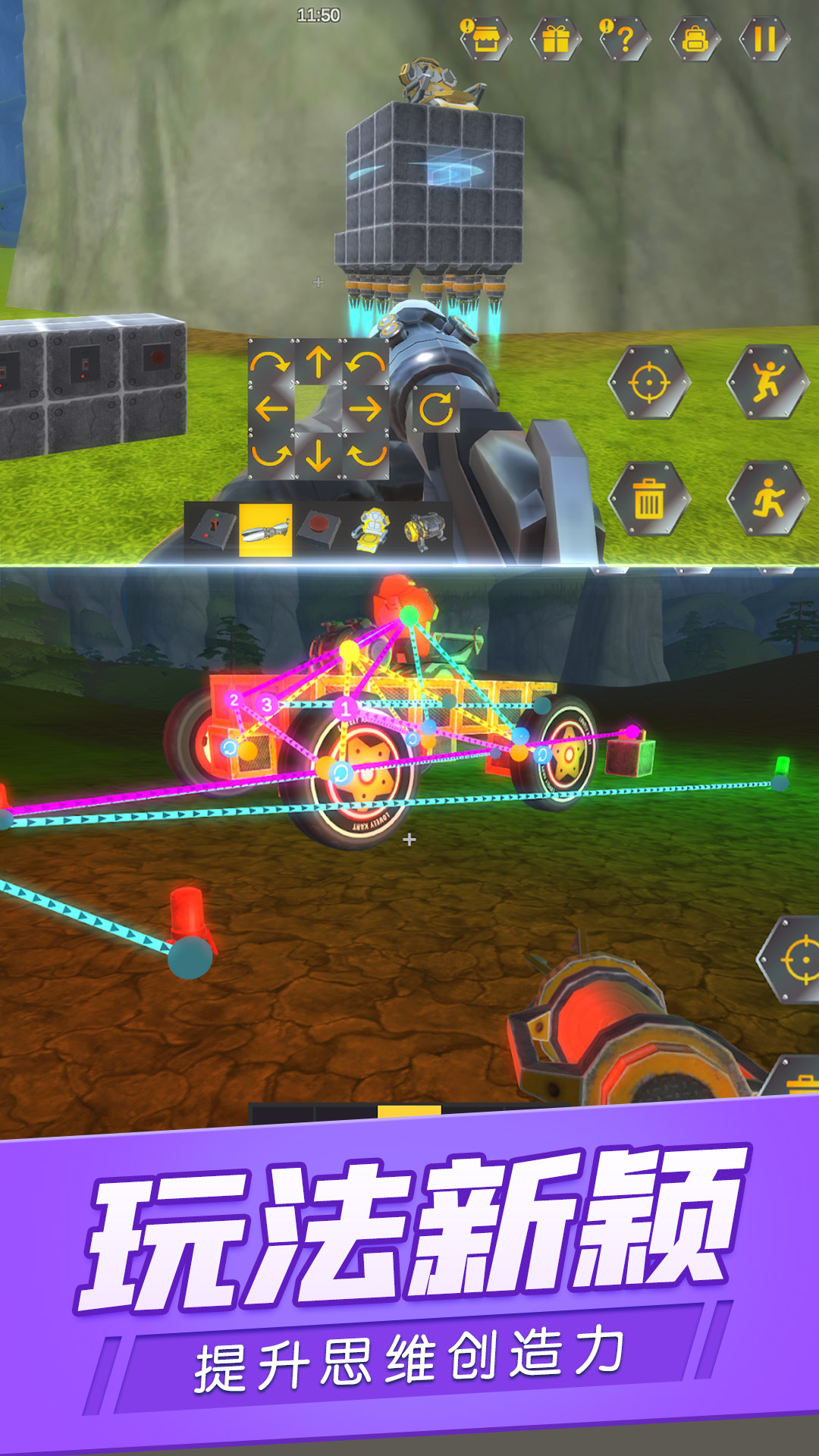 游戏最令人称道的是其精妙的物理系统设计,每个零件都能产生真实的物理反应,让简单的组合也能产生复杂的连锁效应。玩家可以尝试各种天马行空的创意,比如建造一个会自动解谜的机关,或是设计一个能演奏音乐的机械装置。系统会自动计算每个零件的受力情况,确保所有互动都符合物理规律。这种深度与趣味性并存的游戏机制,让每次游戏体验都充满新鲜感和挑战性。