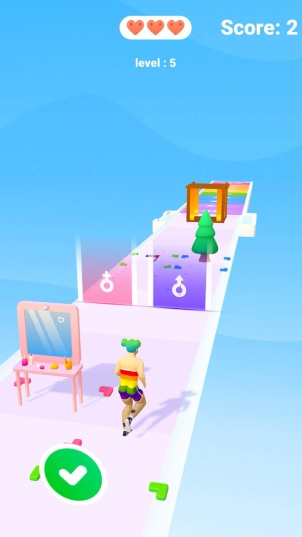 游戏设有每日任务系统,完成任务可获得丰厚奖励,让玩家持续保持新鲜感。在跑酷过程中,玩家需要穿越各种特殊大门来改变角色性别,不同性别拥有各自的特殊能力。这种创新的玩法设计让跑酷体验更加丰富多彩。游戏还设置了多种难度各异的关卡,从简单到复杂,逐步提升玩家的操作技巧。