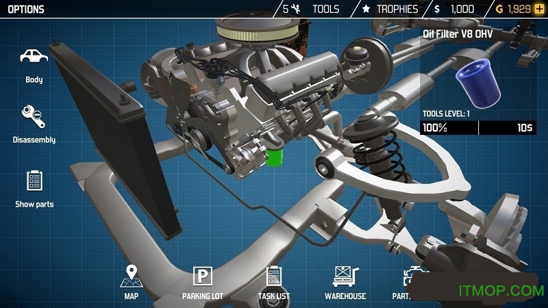 修理完成之后以高价售出,可以去解锁丰富的汽车配件:完善的二手车交易系统会根据修复质量给出不同报价,玩家可以用赚取的利润升级车库设备或购买更稀有的改装零件。