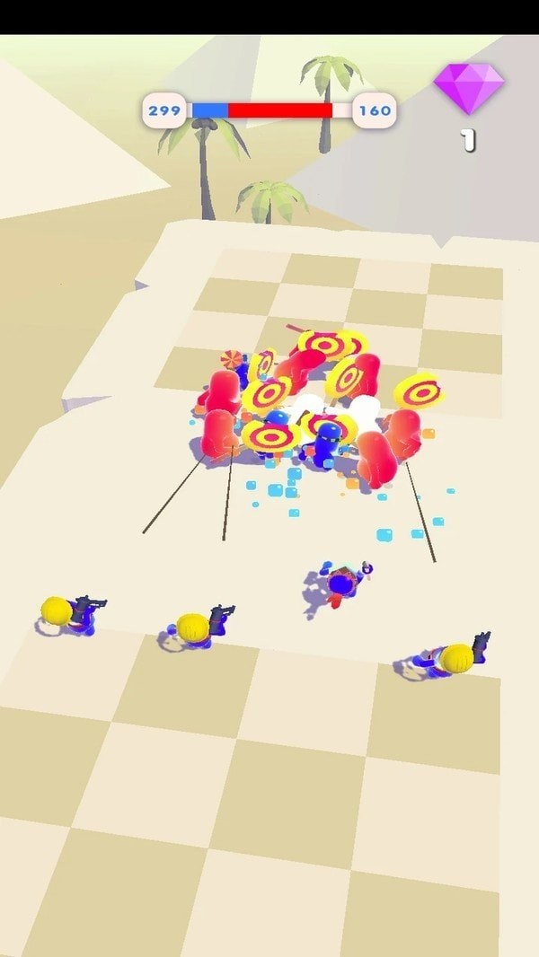 解锁新的武器以保证有更多的效率,庞大的果冻人可能需要多打几下才行,武器系统丰富多变;