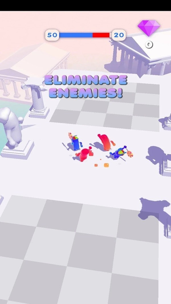 它们也变得越来越难缠,所以同时面对多个果冻人的攻击,需要灵活的移动棍棒,考验玩家的走位技巧;