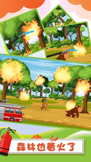 游戏拥有丰富多样的玩法内容,玩家可以驾驶消防车穿梭在城市中,扑灭各处的大火。在完成任务后,还需要对消防设备进行维护保养,清洗并修理重型卡车,确保下次使用时状态良好。灭火过程中,系统会评估玩家的准确性和反应速度,培养孩子们的应急处理能力。游戏还设计了独特的灭火方式,玩家需要左右移动水枪,精准地将水柱喷射到火焰上。除了城市场景外,游戏还设置了森林等不同环境,激发孩子们的探索欲望。通过点击、拖动等简单操作,孩子们可以与场景中的各种物品互动,完成趣味小游戏,打造专属的消防装备。