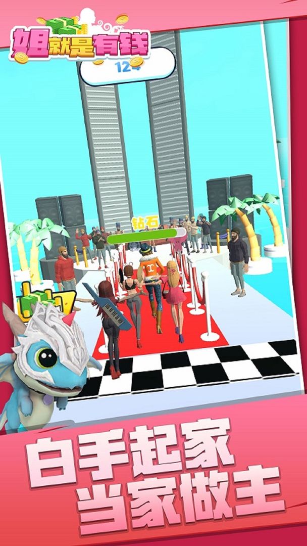 《姐就是有钱》最新版本带来了更多精彩内容。游戏新增了多个主题场景,包括繁华都市、热带海滩、未来科技城等,每个场景都有独特的赛道设计和视觉风格。玩家现在可以解锁更多角色造型和服饰搭配,打造属于自己的独特形象。