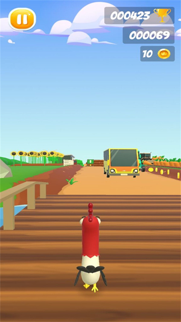 游戏的核心玩法是控制一只造型魔性的公鸡在赛道上疯狂奔跑,玩家需要不断前进,同时应对来自四面八方的攻击。通过灵活的操作,你可以让公鸡跳跃、闪避,甚至利用道具加速冲刺。游戏设计了丰富的关卡,每个关卡都有独特的挑战和隐藏道具,玩家可以通过收集这些道具来提升自己的能力。抵达终点后,不仅能获得金币奖励,还能解锁新的角色和皮肤,让游戏体验更加多样化。