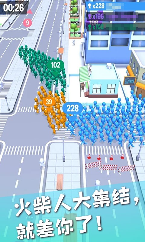 游戏拥有极具魔性的玩法设定,看似清新简约的城市主题下暗藏玄机,为玩家带来意想不到的挑战。玩家需要将分散在各处的火柴人聚集起来,组建一支强大的队伍,与来自世界各地的玩家展开激烈对抗。游戏强调快速反应和战术决策,玩家必须在最短时间内集结力量,通过精准的操作和巧妙的走位来攻击和吞噬其他玩家,最终成为战场上的霸主。