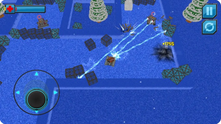 视觉风格类似于旧的任天堂坦克,音乐是朋克音乐,补充了游戏的气氛。复古像素画面搭配现代光影效果,既保留了经典韵味又增添了视觉冲击力,而充满节奏感的背景音乐更是将战斗氛围推向高潮。