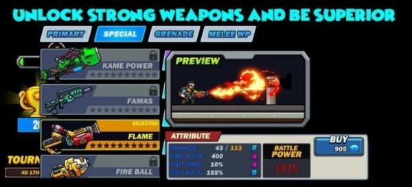 灵活的在战场中切换一些武器,敌人需要特殊武器才能击败,每种武器都有其独特的属性和使用场景。探索角色的故事,熟悉不同的操作技能,在前线战斗,每个角色都拥有专属的背景故事和特殊能力。丰富有趣的战斗,挑战强大的boss,还能与全球玩家PK,实时排行榜系统让你随时了解自己的竞技水平。