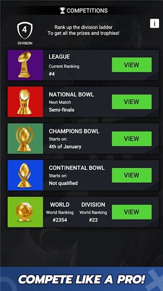 游戏最大的特色是动态天气系统和实时更新的比赛场地,雨天泥泞会降低球员速度,而晴天则有利于长传进攻。操作采用智能简化设计,新手也能快速上手,但高手可以通过组合键施展华丽特技。突破敌方防线需要巧妙运用假动作和变速跑动,每个达阵都充满成就感。开发商持续推出新内容,包括限定皮肤、特殊球场和传奇球员,保持游戏新鲜感。游戏内还设有详尽的战术教学系统,帮助玩家快速提升水平。