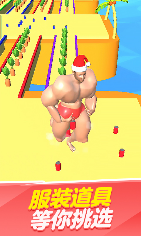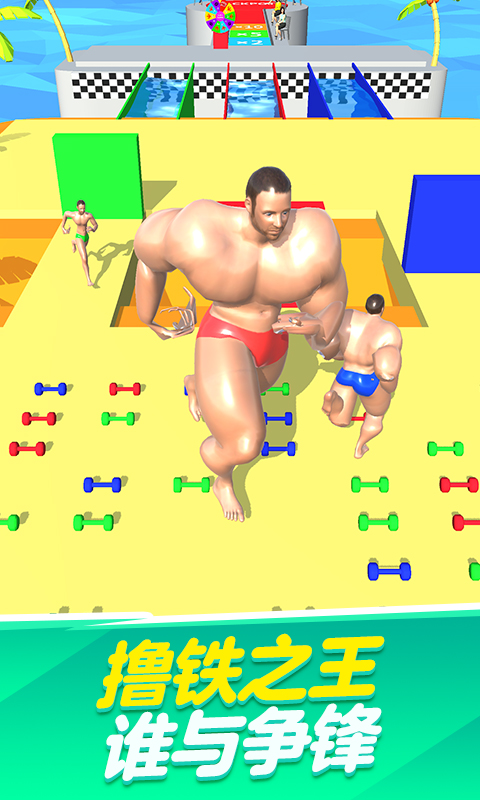 这是一款充满欢乐的跑酷游戏,玩家将操控一个肌肉发达、外表滑稽的猛男角色。游戏采用夸张搞笑的画风,让玩家随时随地都能享受轻松愉快的闯关体验。通过收集哑铃来增强肌肉力量,让角色体型不断变大,可以轻松撞倒个头较小的对手。在奔跑过程中,玩家需要从被撞倒的对手身上收集掉落的哑铃,同时还要注意躲避其他强壮对手的袭击。游戏节奏明快,操作简单易上手,适合各个年龄段的玩家体验。