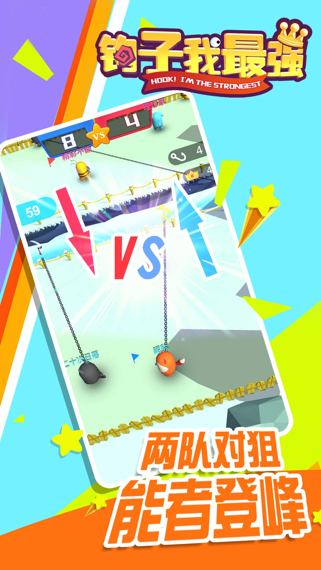 《钩子我最强》是一款极具创意的休闲动作游戏,玩家需要通过钩子将敌人拉入战场,展开激烈对决。游戏分为两个核心模块:单人闯关和多人对战,玩法多样且充满挑战。独特的物理引擎让钩子操作更加真实,每一次出钩都需要精准计算角度和力度。游戏节奏明快,适合碎片化时间娱乐,同时也能满足硬核玩家的竞技需求。无论是休闲玩家还是竞技高手,都能在这里找到属于自己的乐趣。