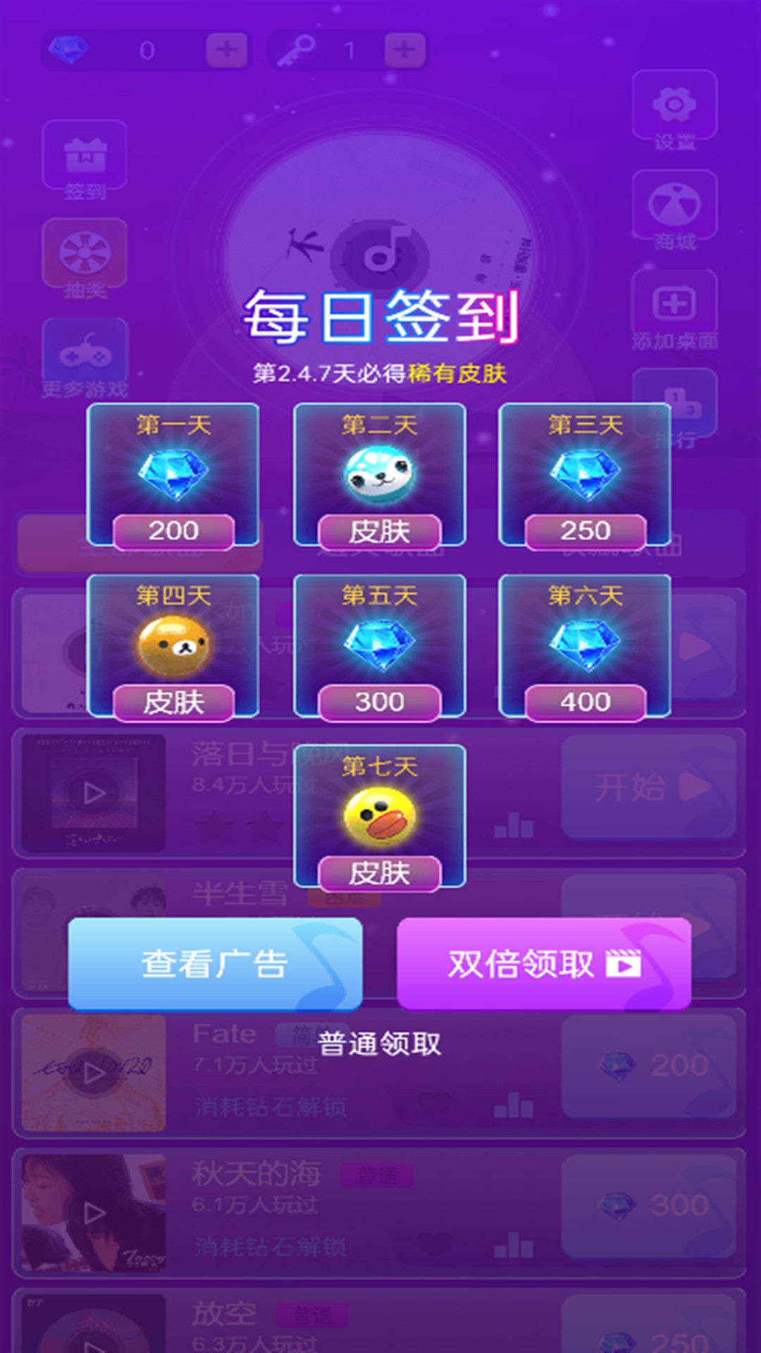所有内容都免费提供给玩家,你只需要用金币来买皮肤,歌曲太少是一个缺陷,但开发团队承诺每月都会更新热门新曲;