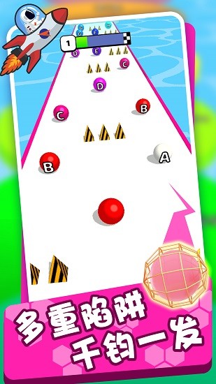 游戏的核心玩法是合并相同的小球,让它们逐渐成长壮大。玩家需要精准操控小球避开危险的尖刺障碍,同时规划最佳路线,最终成功越过终点线完成关卡挑战。通过不断闯关,玩家可以获得丰厚的金币奖励,这些金币可以用来升级初始小球的能力,或者解锁更多有趣的游戏内容。这款游戏将跑酷与益智元素巧妙融合,让玩家在轻松愉快的氛围中享受从起点到终点的完整冒险旅程。