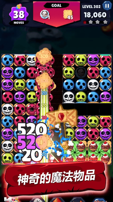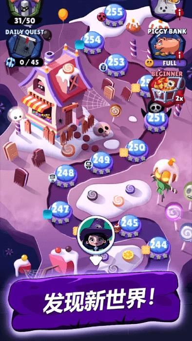 游戏采用卡通艺术风格,画面色彩鲜艳,角色设计可爱,能够带给玩家视觉上的享受。无论是女巫的造型还是万圣节鬼怪的细节,都充满了童趣和创意。操作方面,游戏简单易用,只需轻触屏幕即可完成消除,让你轻松实现指尖的梦想。此外,游戏还提供了丰厚的金币奖励系统,通过完成任务和挑战关卡,你可以获得大量金币,用于解锁新道具或提升角色能力,让你的游戏体验更加丰富多彩。