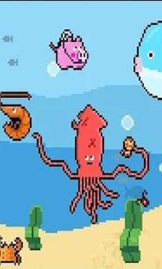 精美像素场景构建出层次分明的海底世界,从发光水母群到巨型鲸鱼骨架都充满细节。动态生态系统让每个生物都有独特行为模式,玩家需要研究捕食策略才能高效成长。游戏采用物理引擎模拟真实流体运动,鱿鱼的每根触须都能独立操控,实现精准捕食或防御反击。昼夜循环系统会改变海域危险程度,夜间出没的深海怪物将带来全新挑战。