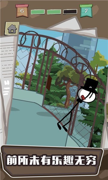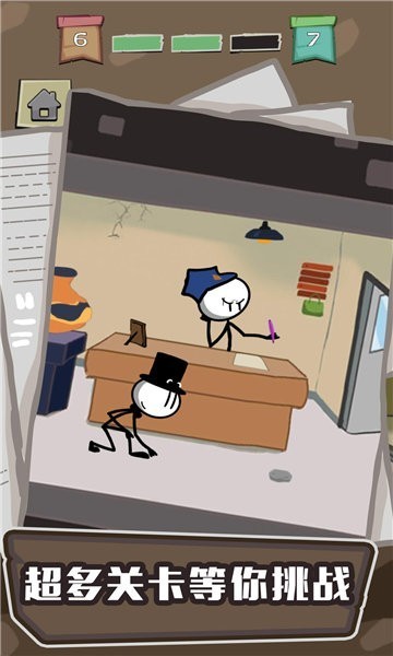 大聪明越狱记手机版下载是一款充满创意与挑战的益智休闲游戏,它将带你体验一场惊心动魄的越狱冒险。游戏中设计了丰富多样的关卡,从最初的牢房逃脱到最终的自由之路,每个环节都需要你开动脑筋,巧妙利用环境与道具,避开狱警的严密监视。独特的解谜机制搭配轻松幽默的火柴人画风,让紧张刺激的越狱过程充满趣味性。游戏还贴心地提供了免费提示功能,帮助玩家攻克那些令人抓狂的难关。如果你喜欢烧脑又带点恶搞风格的冒险游戏,这款作品绝对值得下载体验!