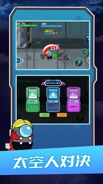 作为一款动作游戏,玩家将扮演一名宇航员战士,在充满未知危险的太空战场中完成各种战斗挑战。游戏强调技巧与策略的结合,每个角色都拥有独特的战斗技巧,玩家需要合理释放技能才能在冒险中取得优势。游戏地图设计精巧,场景布局清晰,玩家可以随时接受并完成各种作战任务。在战斗中,玩家需要充分发挥角色的最强实力,通过精准的操作和巧妙的战术配合,击败更多敌人,最终成为太空战场上的终极幸存者。游戏还支持多人对战模式,玩家可以与好友组队或对战,体验更加丰富的游戏乐趣。