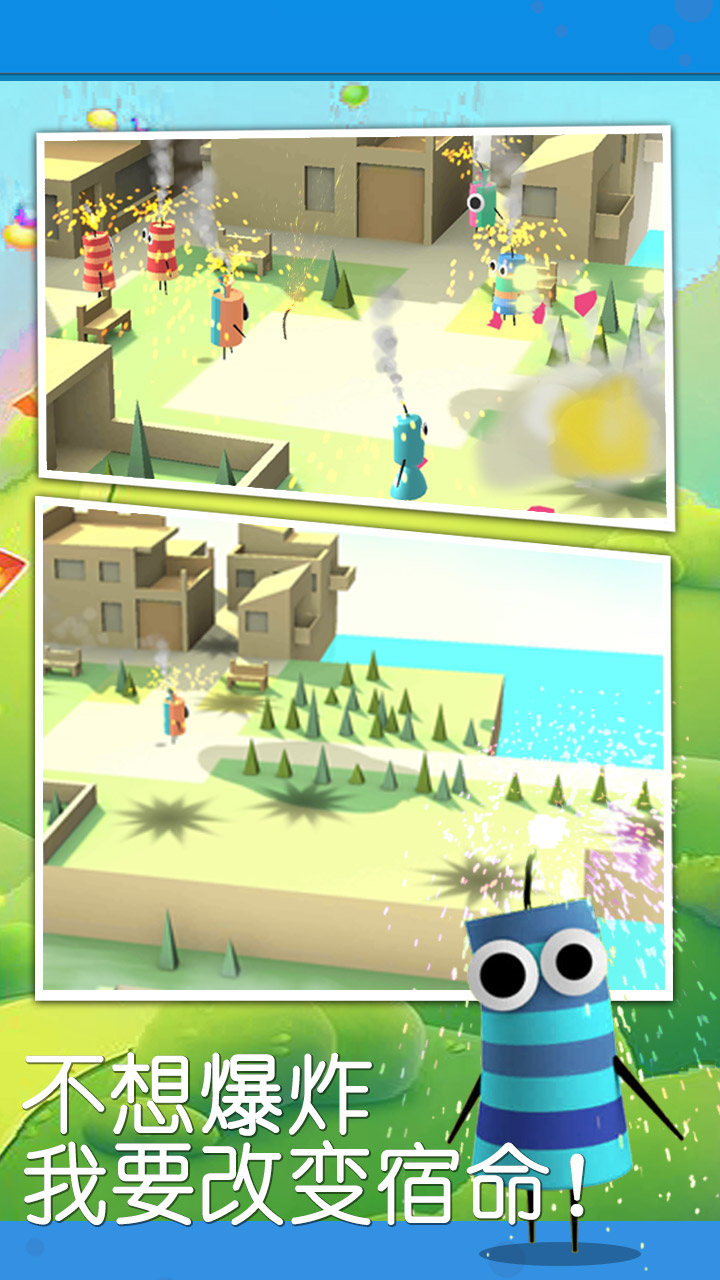《狂奔的爆竹》是一款充满童趣与挑战的休闲跑酷游戏,它将传统爆竹元素与创新玩法完美结合。在这款游戏中,玩家将扮演一只引线已被点燃的可爱小爆竹,必须在燃烧殆尽前穿越重重障碍,完成寻找"长老爆竹"的传奇旅程。游戏采用清新淡雅的色彩风格,搭配生动活泼的角色设计,为玩家营造出一个既轻松又充满冒险氛围的奇妙世界。