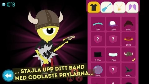 收集乐队,选择音乐风格,现场演奏,但在音乐会开始前,你必须面对挑战,收集分数,购买合适的乐器,很酷的衣服,选择地点。游戏提供数十种乐器组合和上百种服装搭配,玩家可以自由混搭创造出个性十足的乐队形象,每种选择都会影响舞台表演的视觉效果。