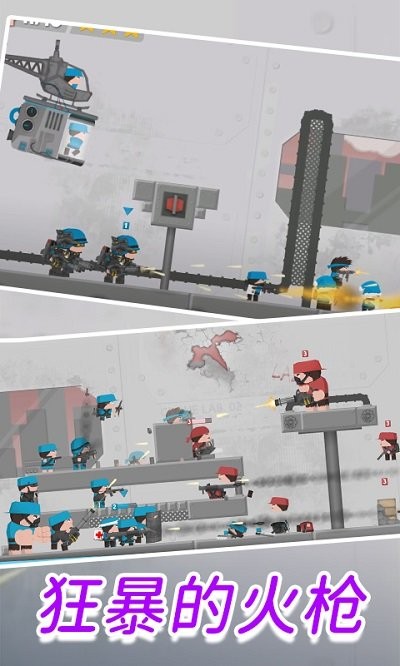 游戏采用经典的5v5对抗模式,玩家将分别加入红蓝阵营,指挥自己的士兵部队展开激烈战斗。每场对战都充满策略性,需要合理运用不同兵种特性,在枪林弹雨中寻找制胜之道。游戏特别设计了丰富的掩体系统,让战斗更具战术深度。玩家可以通过精准操作和团队配合,突破敌方防线,摧毁对方基地。随着等级提升,还能解锁更多强力兵种和特殊技能,让战斗体验更加丰富多彩。