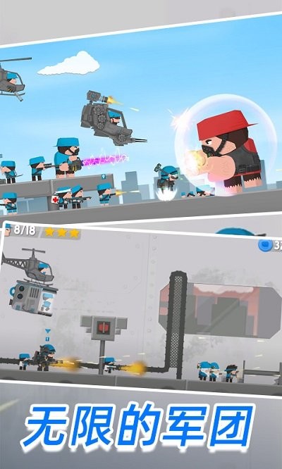 游戏中提供数十种特色兵种,从轻步兵到重装坦克,每个单位都有独特的战斗属性和技能效果。Q版卡通画风搭配精致的战场场景,为玩家带来轻松愉快的视觉体验。每个士兵都配备专属武器系统,玩家需要根据战场形势合理搭配部队阵容。游戏还加入了天气系统和昼夜变化,让每场战斗都充满新鲜感。定期更新的赛季内容,保证玩家始终能体验到最新鲜的游戏乐趣。