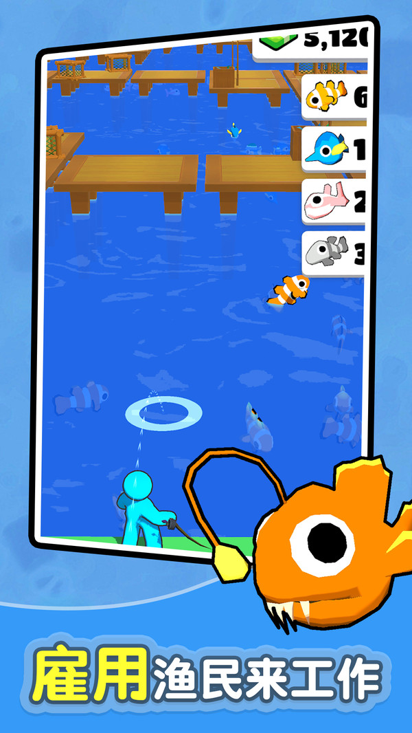 初步开发,雇佣渔民打工;随着业务扩展,你可以雇佣更多渔民来帮忙,组建自己的捕鱼团队提高效率。