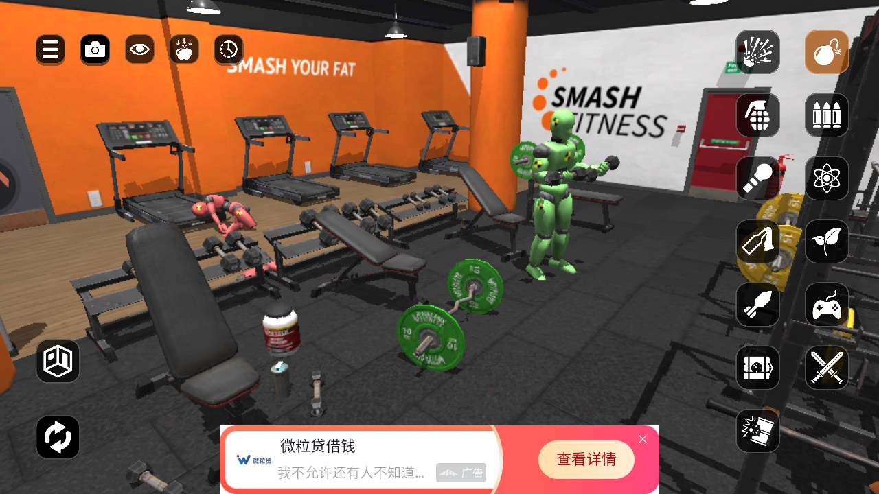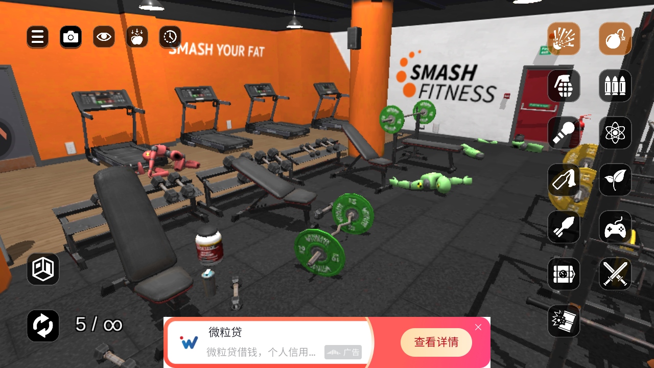 进入游戏场景后,屏幕右侧会显示各种破坏工具和能力的图标菜单。这些工具包括炸弹、火焰喷射器、重锤等多种选择,每种工具都能带来不同的破坏效果。点击第一个炸弹图标后,游戏会进一步展开更详细的破坏选项,让你可以根据自己的喜好选择具体的破坏方式。