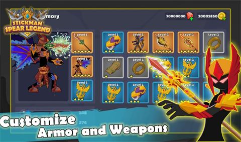 游戏采用直观的触控操作方式,玩家只需通过拖拽瞄准来投掷长矛攻击敌人。精准命中敌人头部可以一击必杀,而身体部位则需要两次命中才能消灭敌人。随着游戏进程,玩家可以解锁更多强力武器和装备,通过合理的搭配来提升战斗力。游戏还设有丰富的升级系统,玩家可以通过击败敌人获得资源,强化武器和护甲,打造属于自己的最强火柴人战士。