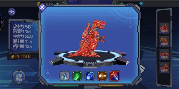 机械恐龙多样化选择:提供20余种造型独特、功能各异的机械恐龙,每只恐龙都拥有专属的进化路线和技能树。丰富的战斗模式:包含5V5团战、生存挑战、BOSS突袭等多种模式,每种模式都有独立的排行榜和奖励机制。强大的装备系统:超过200件可收集装备,支持自由搭配和强化升级,打造个性化的战斗风格。华丽的画面:采用次世代引擎打造,细腻的材质和动态光影效果让每场战斗都如同电影般震撼。