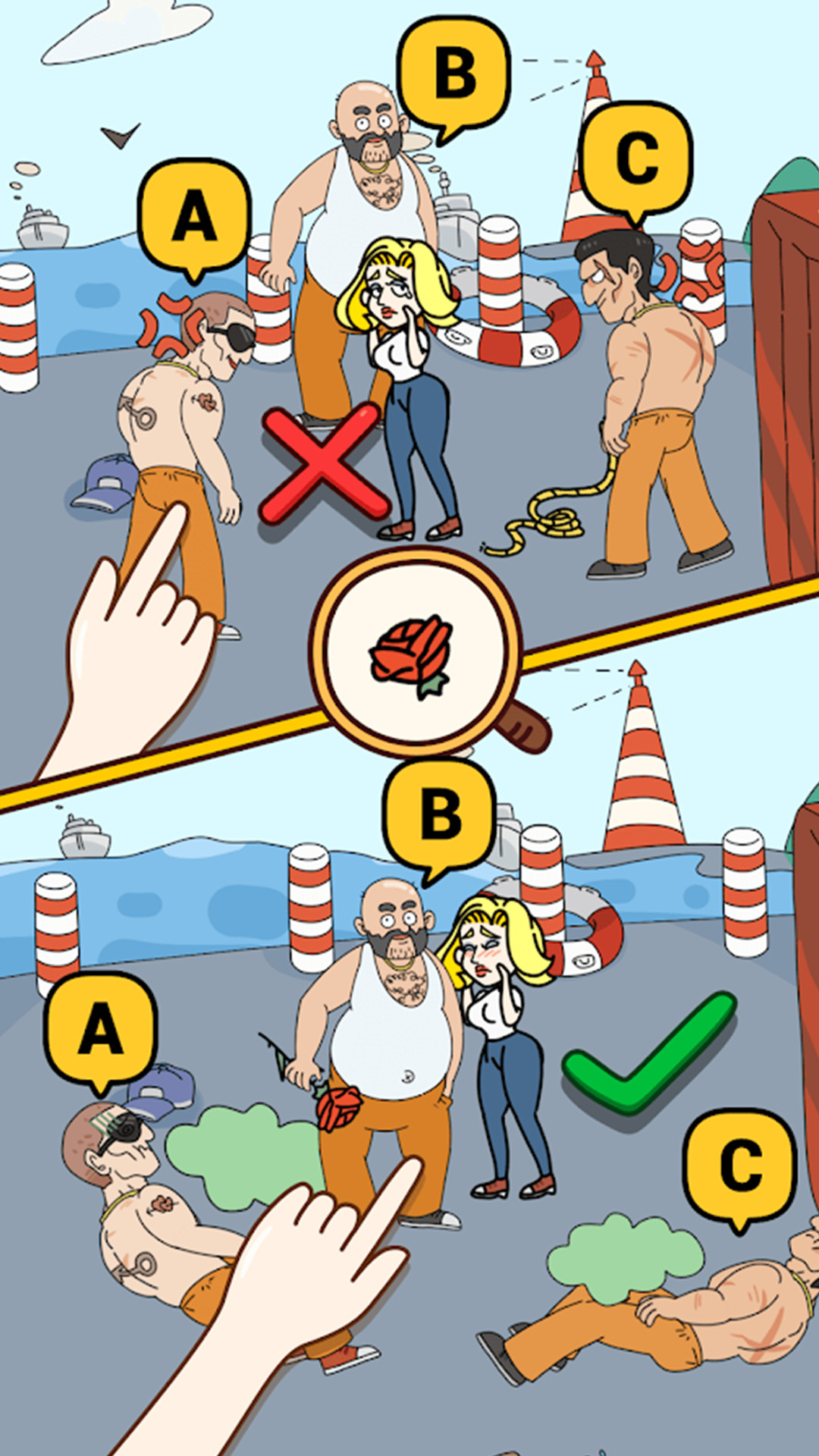 这是一款充满奇思妙想的解密闯关类游戏,它将传统脑筋急转弯与创新玩法完美结合。游戏采用诙谐幽默的插画风格,配合精心设计的多样化场景,让您在解谜过程中既能感受到智力挑战的刺激,又能享受轻松愉快的游戏氛围。每个关卡都经过巧妙构思,既考验您的观察力,又挑战您的想象力。无论是单人挑战还是与朋友比拼,都能让您体验到花式解谜的无限乐趣。