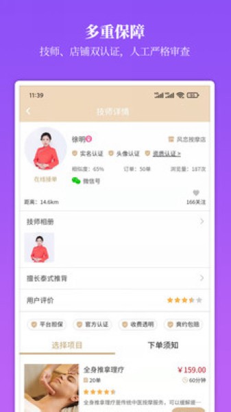 所有入驻技师都需要通过严格的实名认证和背景审核,平台还会定期更新健康证明,确保服务人员资质可靠,让用户享受安全放心的服务体验。