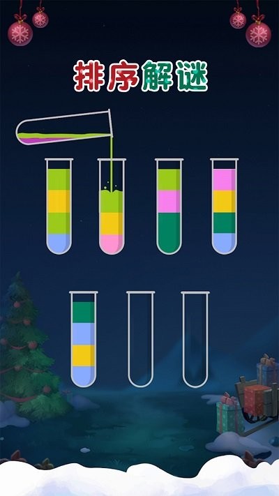 独特的液体调配玩法让游戏更具创意,玩家需要通过倒水操作来达成特定目标,这种新颖的玩法设计为传统的排序游戏注入了新的活力。
