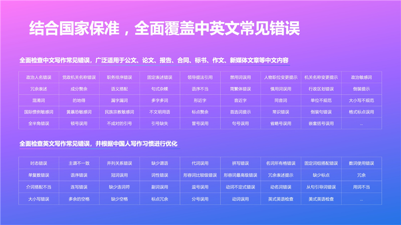 翻译功能支持整段或整篇翻译,保持原文格式不变。错字识别系统采用深度学习技术,能够识别各类常见错误,包括拼写错误、语法错误、标点错误等,并提供专业修改建议。