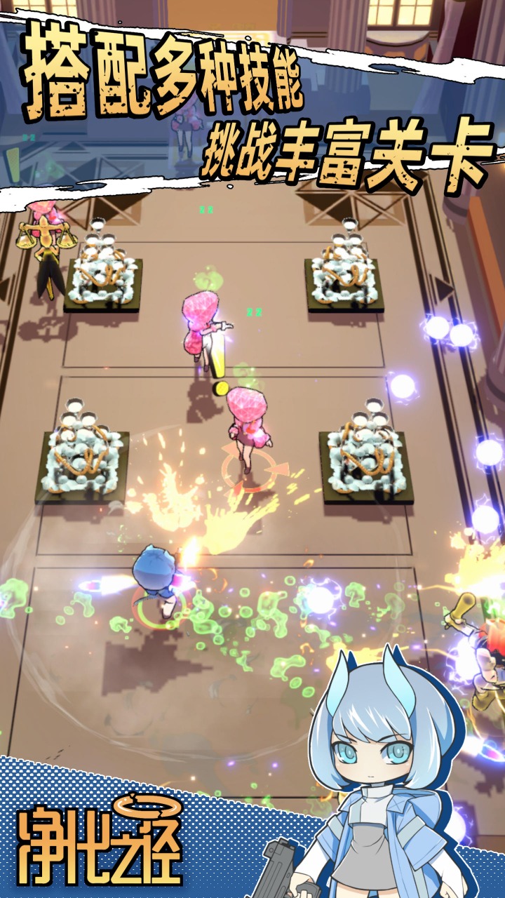 净化之径是一款画风简约却不失精致的动作射击闯关游戏,它将考验玩家的操作技巧与策略思维。在这款游戏中,你需要通过指尖的精准操控,让角色在枪林弹雨中灵活走位,同时运用各种技能组合击败成群结队的怪物。随着关卡的推进,挑战难度会逐步提升,玩家需要不断调整战术,解锁更多强力技能,才能突破重重阻碍,最终完成所有冒险旅程。