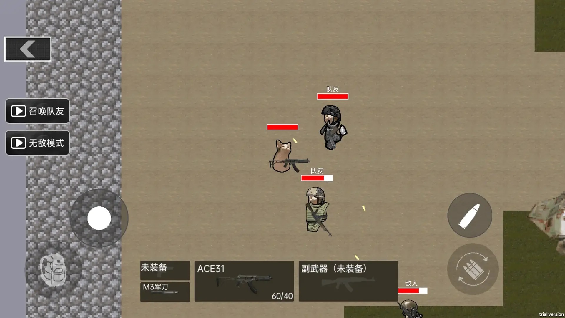游戏采用直观易上手的操作方式,玩家可以通过虚拟按键轻松实现射击、跳跃和闪避等动作。在战斗中,玩家需要合理利用地形优势,躲避敌人的攻击并寻找最佳射击位置。资源收集系统让玩家可以在关卡中搜寻弹药、医疗包和升级材料,这些物资对于生存至关重要。游戏还引入了角色成长系统,玩家可以通过战斗获得经验值来提升角色的各项能力。特别值得一提的是,游戏支持多人联机模式,玩家可以邀请好友组队作战,共同面对更具挑战性的敌人和关卡。