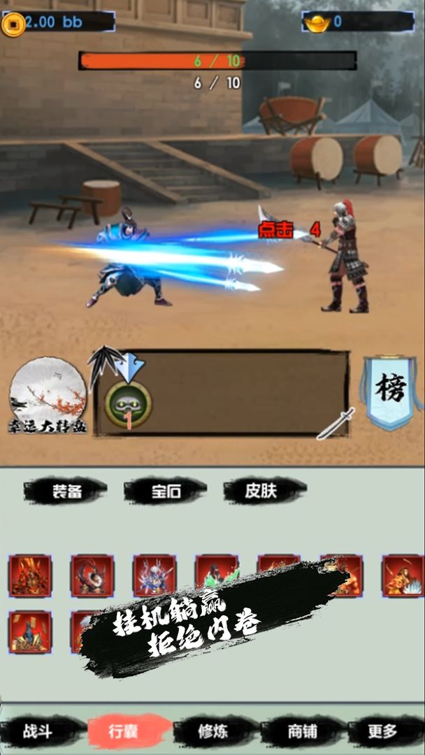 作为一款创新型点击式放置战斗游戏,躺赢2完美融合了策略与休闲元素。游戏采用精美水墨画风,每个场景都充满东方韵味。玩家可以通过点击屏幕轻松完成角色升级,解锁各种炫酷皮肤装备。游戏设计了丰富的任务系统,从日常挑战到特殊活动应有尽有。更贴心的是,游戏提供一键挂机功能,让玩家在忙碌时也能持续获得收益,真正实现"躺赢"的游戏体验。
