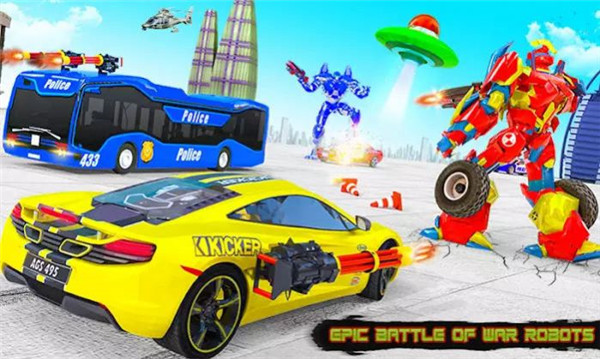 《飞行巴士机器人汽车战争》是一款融合机甲操控与城市冒险的3D动作手游,玩家将驾驶可变形战斗机器人在高度拟真的现代都市中展开激烈对抗。游戏采用次世代引擎打造,细腻还原了摩天大楼、高速公路等城市场景,支持昼夜动态切换和天气系统。除了单人剧情模式外,游戏还提供多人组队副本、实时PVP竞技等丰富玩法,玩家可以自由改装机甲形态,在汽车、飞行器、战斗机器人三种模式间无缝切换,体验前所未有的立体化战斗乐趣。