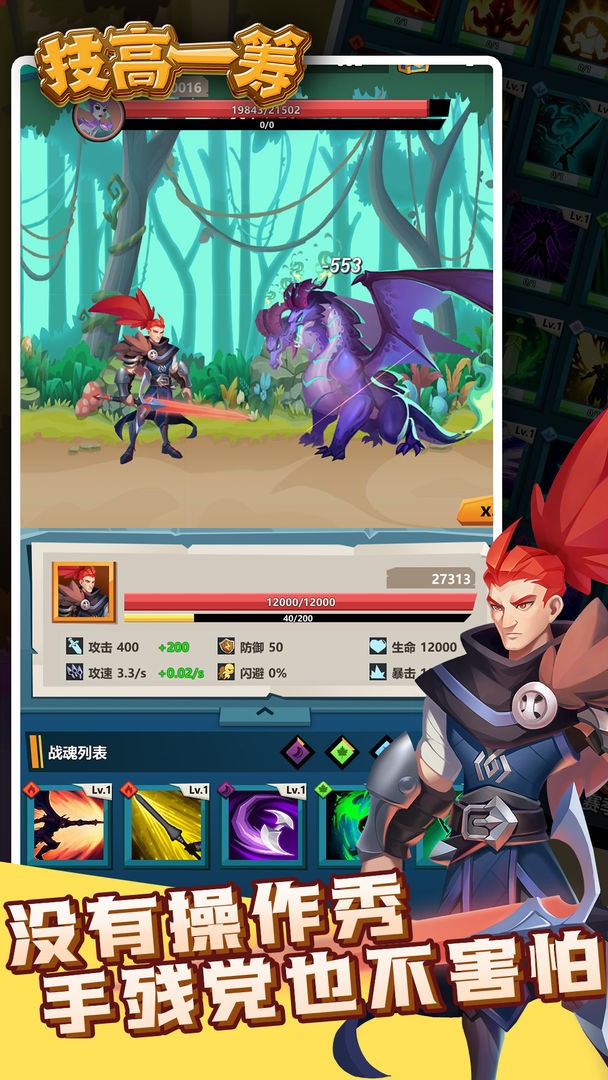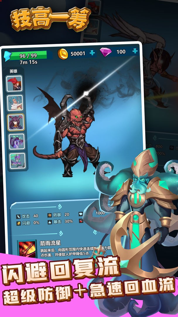 游戏的操作非常简单易上手,玩家只需选择技能并搭配合理的战斗策略即可,无需复杂的操作技巧。同时,游戏引入了属性相克机制,玩家需要根据敌人的属性灵活调整技能搭配,避免单一属性的技能组合被克制。这种设计不仅增加了游戏的策略深度,也让战斗更加充满变数。无论是喜欢快节奏战斗的玩家,还是偏好策略搭配的玩家,都能在《技高一筹》中找到属于自己的乐趣。
