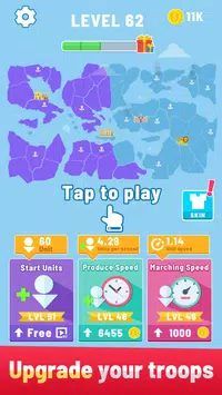 有趣的玩法。在游戏开始时,您可以获得小单位,通过占领扩大您的部队,选择进攻目标,聚集部队的力量以占领更多领土,最终获胜!每个港口都有独特的加成效用,占领关键港口将获得战略优势。