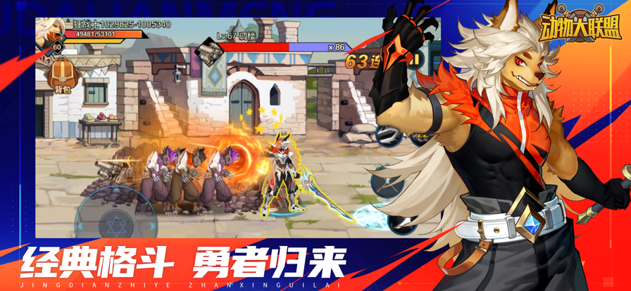动物大联盟是一款充满激情的动作格斗游戏,玩家将进入一个由各种动物角色组成的奇幻世界。游戏提供多种独特职业供玩家选择,每个角色都拥有专属技能和战斗风格。随着冒险深入,玩家将面对越来越强大的敌人,通过战斗不断提升实力。游戏支持多人合作模式,玩家可与好友组队挑战高难度副本,体验紧张刺激的团队战斗。精美的画面表现和流畅的操作手感,将带给玩家酣畅淋漓的战斗体验。