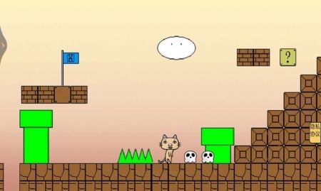 游戏采用经典的横向卷轴模式,玩家需要从左向右不断前进直至终点。沿途会遇到各种奇特的怪物,包括独特的猫形敌人,它们会以意想不到的方式发起攻击。更要警惕从天而降的威胁,稍不留神就会被突如其来的危险击中,导致闯关失败。