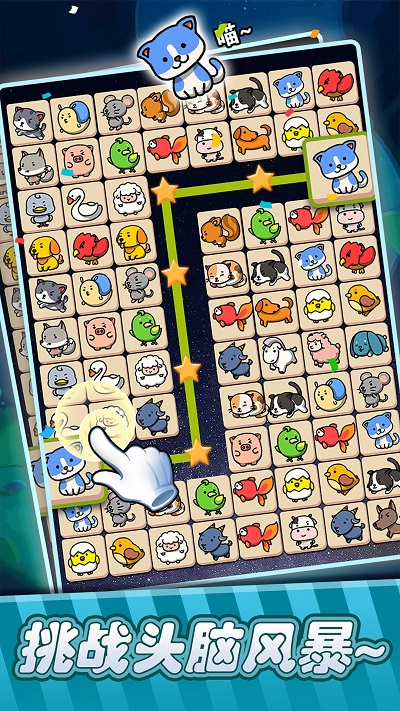 游戏操作简单玩法经典,各个年龄段都可以尝试。玩家只需用手指轻触屏幕,将两个相同的小动物图案连接起来即可消除。成功将全部可爱的小动物们连线消除即可进入下一关游戏。游戏还提供了详细的新手引导,帮助玩家快速掌握操作技巧。采用经典连连看玩法、匹配两个相同的动物即可消除,简单易上手但又不失挑战性,让玩家在轻松愉快的氛围中享受游戏乐趣。