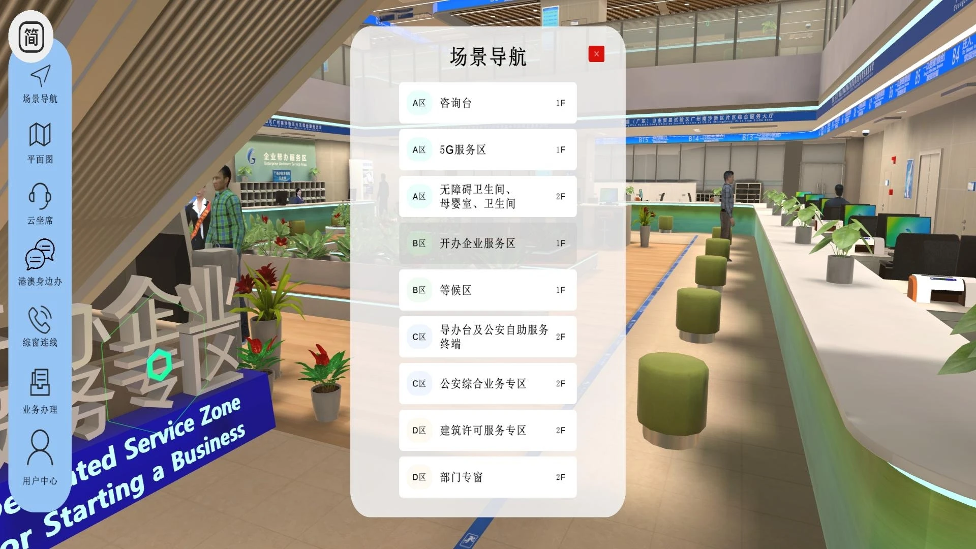 场景化服务模式:根据不同业务类型构建专属虚拟场景,如税务专区、社保专区等主题空间。