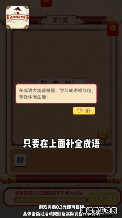 成语闯关大师是一款充满挑战与乐趣的成语答题闯关游戏,玩家将在游戏中体验到丰富多彩的成语知识比拼。这款游戏不仅考验玩家的智慧与反应能力,更对玩家的成语储备量提出了较高要求。在紧张刺激的闯关过程中,玩家需要在规定时间内准确答出每一道题目的答案才能顺利通关,这种限时挑战机制为游戏增添了更多趣味性和紧张感。