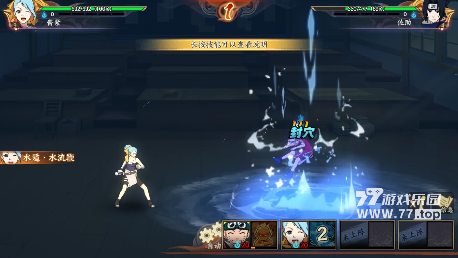 游戏采用半即时制战斗模式,在传统回合制基础上加入了查克拉管理、属性克制等策略元素。战斗中可以自由切换主控角色,通过精准的结印操作释放组合忍术。特别设计的"奥义连携"系统,当特定角色组合出战时会触发专属合体技,如鸣人佐助联手施展的"威装·须佐能乎"等震撼特效。